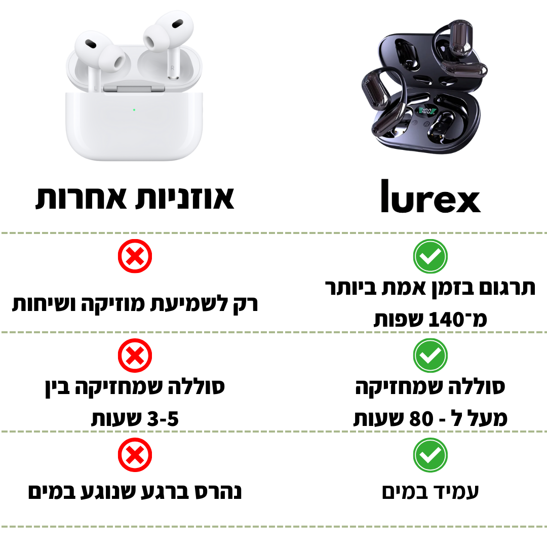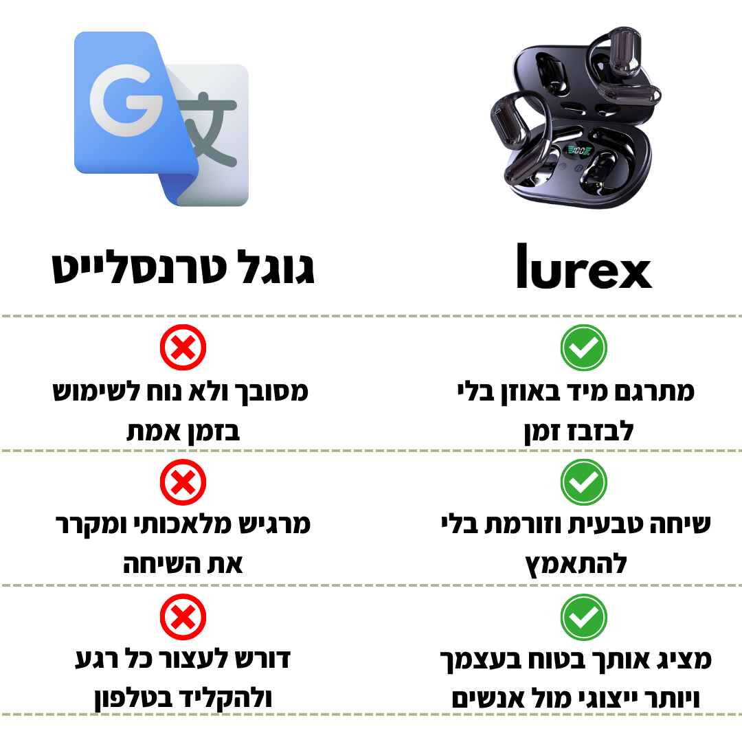 בניגוד לאפליקציות מסורבלות, ה־Lurex™ מעניק לך חופש לדבר בביטחון בטיולים, בעבודה או בפגישות חשובות ולתת רושם מקצועי וייצוגי בכל שיחה.