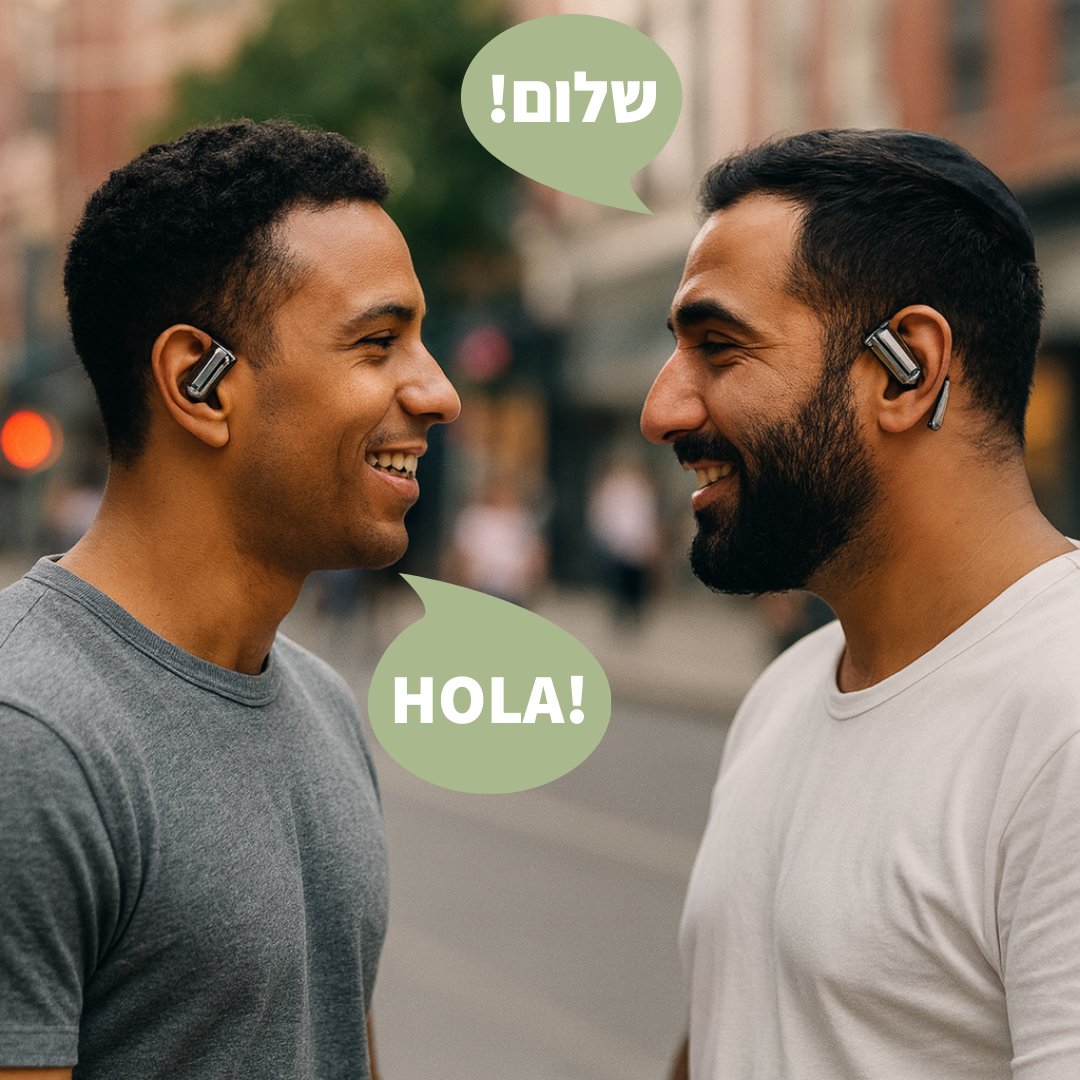 האוזניות מאפשרות לך לתרגם שיחה בזמן אמת, בצורה טבעית, זורמת וברורה בלי לעצור, בלי להקליד ובלי מבוכה.